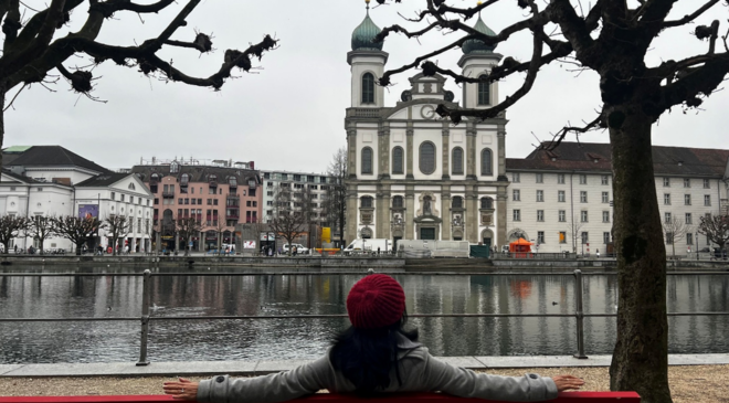 Sau Strasbourg, mình lái xe khoảng 3 tiếng nữa là vượt biên sang Lucerne, Thụy Sĩ. Thụy Sĩ trong tâm trí mình là một nước nhân đạo có lá cờ đỏ chét với chữ thập trắng, đồng hồ Rolex, ước mơ thuở nhỏ và ngân hàng Thụy Sĩ nơi người giàu gửi tiền. Phải công nhận, phong cảnh Thụy Sĩ đẹp hơn hẳn Pháp: nhiều hồ, núi đồi chập chùng, làng mạc nhấp nhô thanh bình. Lái xe một đoạn là… chui hầm, hầm dài, hầm ngắn, uốn lượn, xây dựng gọn gàng đẹp mắt. Cảm giác như đang lái xe xuyên qua một bức tranh.