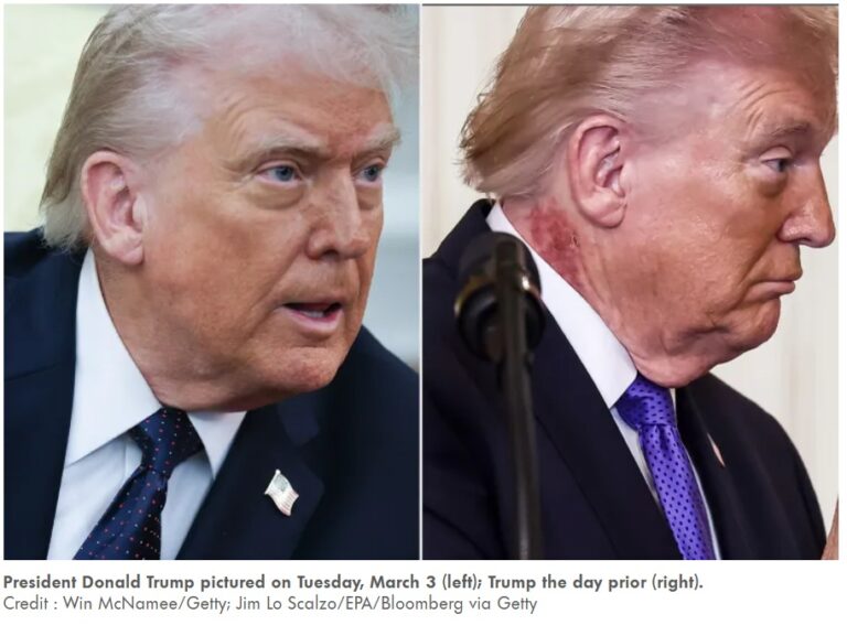 Sáng nay, vào khoảng 11 giờ, Tổng thống Hoa Kỳ bước vào East Room với một vết phát ban lộ rõ bên phải cổ áo. Lớp trang điểm màu cam của ông trông loang lổ, như thể ông được báo gấp rằng mình phải tham dự một sự kiện vào phút chót.