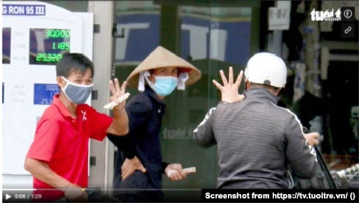 Trân Văn 18-2-2022 “Cây xăng ba ngón” đặc tả một cửa hàng xăng dầu ở TP.HCM, nơi những người bán xăng giơ ba ngón tay với tất cả khách hàng. Thủ hiệu đó hàm ý cửa hàng chỉ có thể bán cho mỗi người lượng xăng tương ứng 30.000 đồng. Không rõ ông Nguyễn Hồng Diên, Bộ trưởng Công Thương…