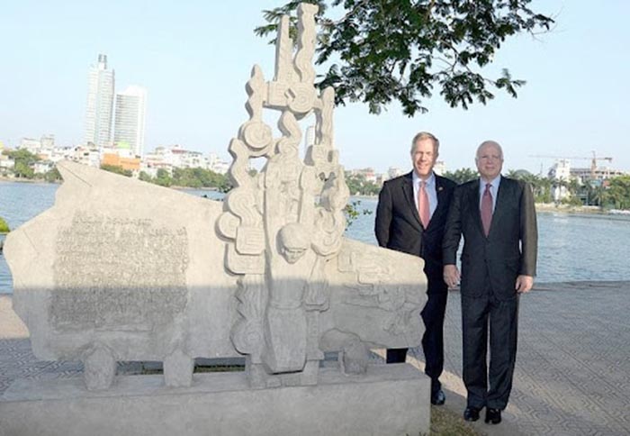 Ted Osius 27-7-2021 Ngay khi tôi đến Hà Nội, dòng chữ khắc về ông John McCain trên tượng đài cạnh hồ Trúc Bạch đã được sửa lại. Khi ông McCain thăm Việt Nam vào tháng 5/2015, tôi dẫn ông cùng một số thượng nghị sĩ khác đến thăm tượng đài này, sau khi nó được chỉnh trang và trùng tu.…