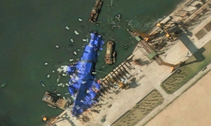 Chiến hạm Bắc Hàn đang nằm nghiêng trong trạng thái nửa chìm nửa mắc cạn, tình huống được đánh giá là khó xử lý nhất, theo chuyên gia. Hình ảnh vệ tinh thương mại chụp hồi đầu tuần và được CNN phân tích ngày 31/5 cho thấy Bắc Hàn đã triển khai nhiều vật thể màu trắng, giống như khí…