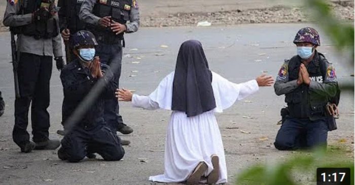 Biểu tình Myanmar: Nữ tu quỳ xuống cầu xin ‘Hãy bắn tôi’