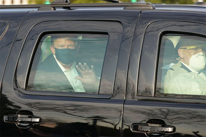 TT Trump tiến triển tốt, bất ngờ xuất hiện ngoài bệnh viện cảm ơn người ủng hộ