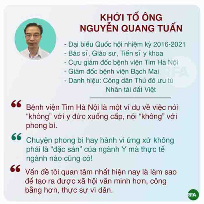 Phan Ngọc Minh 22-10-2021 Ông Nguyễn Quang Tuấn là một tài năng y học. Ông đã từng đi tu nghiệp chương trình tại Đại học Toulouse, Pháp học về ngành Tim mạch can thiệp. Năm 2010, nhóm của ông Nguyễn Quang Tuấn và tiến sĩ Phạm Mạnh Hùng được trao giải nhất Giải thưởng “Nhân tài đất Việt” trong lĩnh…