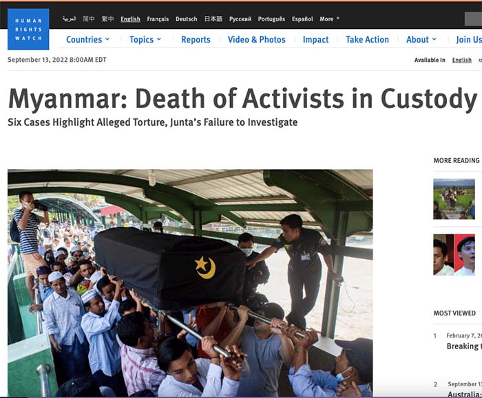 Một báo cáo do Tổ chức Theo dõi Nhân quyền công bố hôm thứ Ba (13/9) đã mô tả về mức độ lạm dụng và tra tấn của các nhà cầm quyền quân sự Myanmar đối với các tù nhân chính trị.Báo cáo của Theo dõi nhân quyền về những cái chết của các nhà hoạt động trong tù tại…