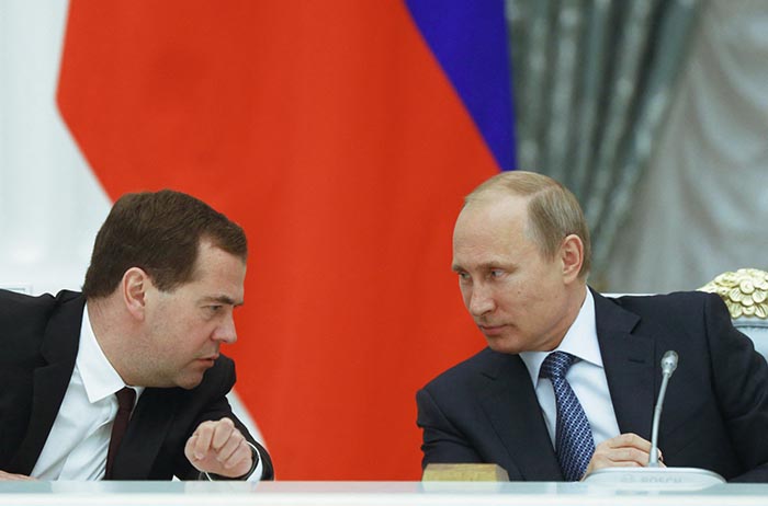 Tổng thống Nga Vladimir Putin (R) nói chuyện với Thủ tướng Dmitry Medvedev trong cuộc họp tại Điện Kremlin ở Moscow, vào ngày 07/05/2014. (Ảnh của DMITRY ASTAKHOV / RIA-NOVOSTI / AFP qua Getty Images) Ông Medvedev cảnh báo: Thế giới đang trên bờ vực chiến tranh thế giới thứ III Bình luận Quang Nhật • 18:14, 25/04/23 Giúp…