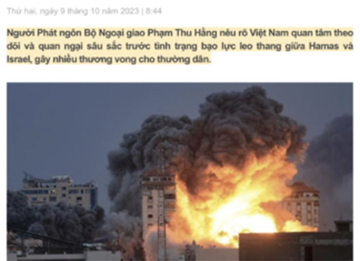 Trương Nhân Tuấn 15-10-2023 Lập trường của Việt Nam về cuộc khủng bố của Hamas trên lãnh thổ Do Thái theo tôi là “chừng mực”. Việt Nam quan tâm theo dõi và quan ngại sâu sắc trước tình trạng bạo lực leo thang” đồng thời kêu gọi “các bên liên quan kiềm chế”. Mọi hành vi khủng bố đều phải…