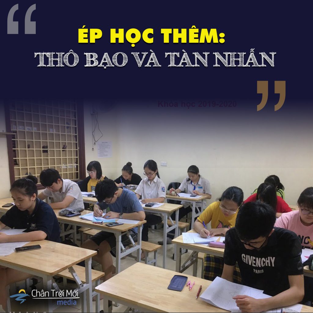 Thái Hạo Ép bằng nhiều cách, có lẽ chúng ta, những người có con cháu đang đi học, đều đã quen, như: viết đơn tự nguyện, chèn vào giờ chính khóa, đưa tiết chính khóa cài vào buổi học thêm, trả bài chính khóa trong buổi học thêm, phân biệt đối xử, cố tình gây khó dễ bằng điểm số;…