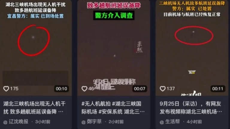 Sau khi UFO gây nhiễu tại sân bay Thiên Tân làm ảnh hưởng đến nhiều chuyến bay cất và hạ cánh, vào tối ngày 24/9 UFO lại xuất hiện tại sân bay quốc tế Tam Hiệp ở Nghi Xương, tỉnh Hồ Bắc khiến nhiều chuyến bay bị hoãn hoặc chuyển hướng. Nhiều cư dân mạng đăng video lên các nền…